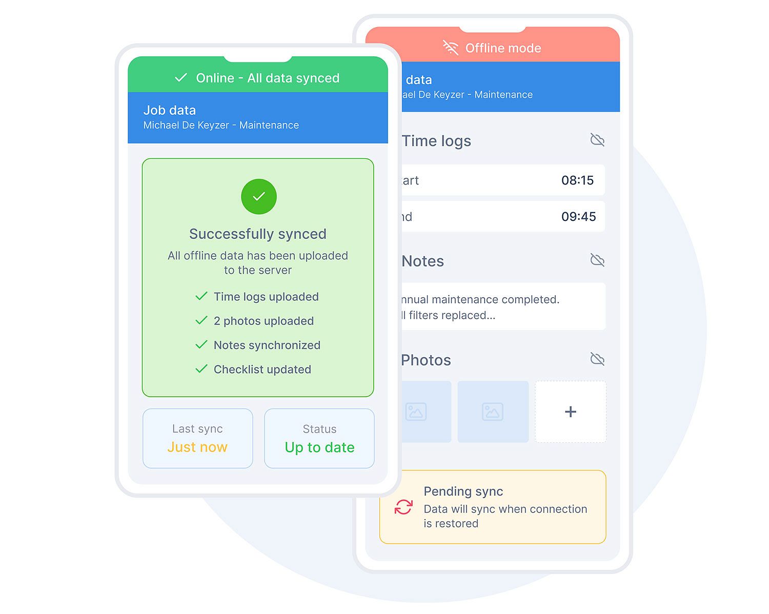 Zodra er weer verbinding is, worden alle gegevens automatisch gesynchroniseerd. Zo werk je altijd betrouwbaar, waar je ook bent.